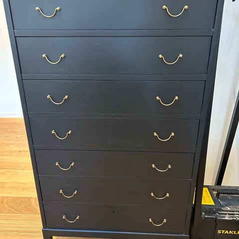 Antik flot gammel kommode, som er 2 delt, dvs mab kan tage den øverste del af hvid man vil. Låsene er blændet/fyldt ud. Kan leveres mod betaling eller afhentes i Dianalund.