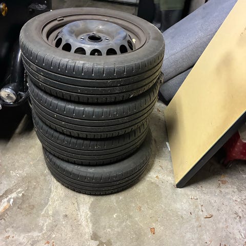 195 / 60 / R15, sommerdæk, 5-6 mm mønster, fælge med dæk, Stålfælge 15