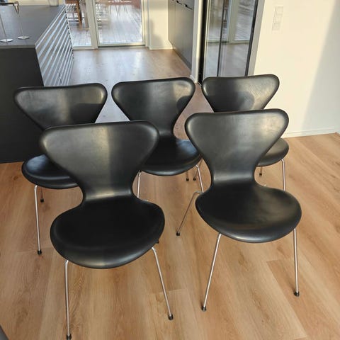 2 stk Arne Jacobsen – 7er stol – Fritz Hansen 3107 Fuldpolstret Læder