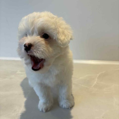 Han har den smukkeste hvide pels som er nem at holde og pleje. Han er bamse klippet eller kortere. Ingen løbeøjne.