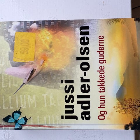 Skønlitterær bog med titlen "Og hun takkede guderne" af den populære forfatter Jussi-Adler Olsen.