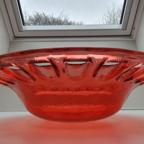 Flot vintage glas bordfad fra Richards Art Collection. Det er fra 1980erne, hvidt/gråt, ingen skår, Ø 26 cm.