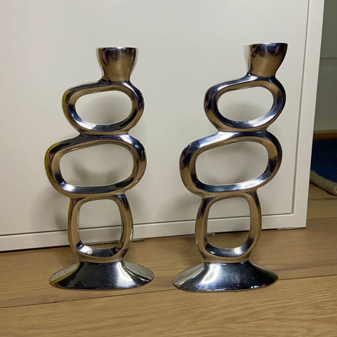 Derved er der blevet 3 stk. pæne aluminiums lysestager tilovers