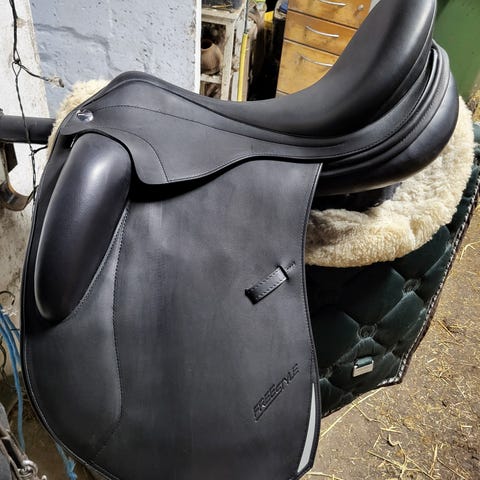 ErrePlus Freestyle 17” deep seat monoklap dressursadel. Skrå knæstøtte.