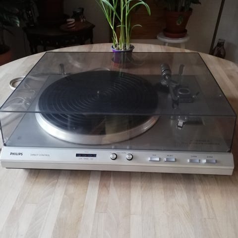 Philips pladespiller i teak lille og kompakt