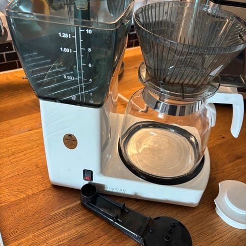 Kaffemaskinen til den meget kaffe tørstige, den laver 12 kopper 1,5 liter kaffe, og den gør det hurtigt, en super god maskine, nyafkalket og klar til ny ejer.