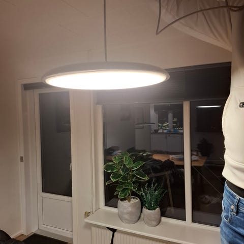 BEMÆRK: Ophængsbeslaget der skal være inde i lampens rosette mangler. Dette kan købes online, i Bauhaus og i stort set alle lampebutikker. Beslagets længde skal være 8,5 Cm.