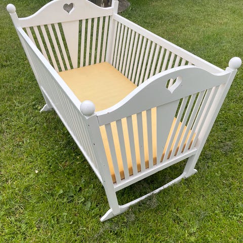 Vintage fransk vugge. Fransk design, perfekt til børneværelse, kontor, udstilling i butik. Let at flytte rundt på og ser godt ud med puder i, granruller, stof. Kan bruges til rigtig mange tak.