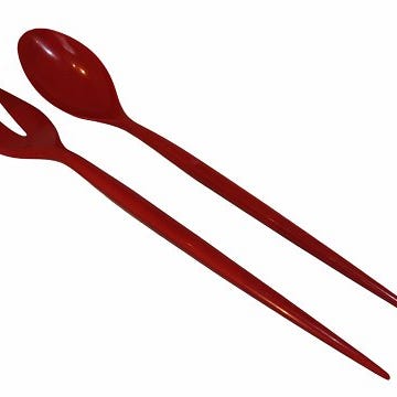 Originalt gult salatbestik til krenitskåle fra 1950'erne.