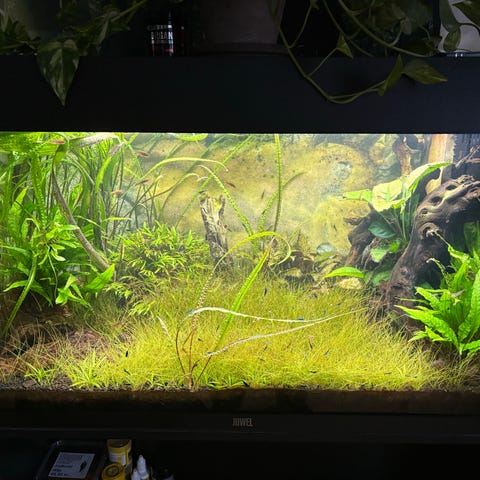 Et dejligt kvarium. Juwel Rio 240L Det leveres med det originale JUWEL akvariefilter, en luftpumpe, fisk og alt nødvendigt tilbehør (sten og andre ting) som vist på