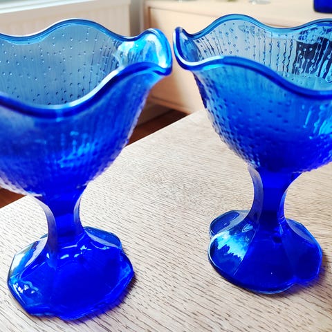 Glas, 3 isglas/skåle i Blåt glas, Blåt glas