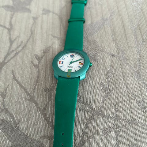 Smukt SWISS Benetton by BULOVA-ur med spejldisplay og kontinenter.