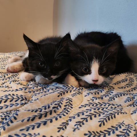De sødeste, sorte søstre. To rolige, skønne, sjove og virkeligt rare ungkatte klar til deres blivende hjem. De har været i hænder fra fødslen og vi har taget os godt af dem med tid og opmærksomhed. De er vant til at nusse og lege med mindre børn, da vi har en dagpleje.
