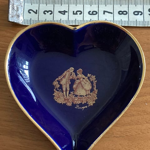 Fransk Pelletier lille Fad nipseskål Design Georges Pelletier i 70'erne. Unikt håndlavet i glaseret fajance med forgyldte detaljer. Mål: længde 18,5 cm, bredde 16,5 cm og dybde 3 cm i perfekt stand og med signatur