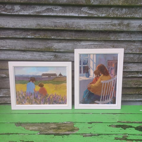 Thomas Tråsdahl oliemaleri Mor og barn læser