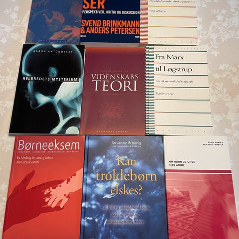 Pakke med populære fagbøger. Flere helt ubrugt. Hjernesmarte børn, skolevægring og mobning.