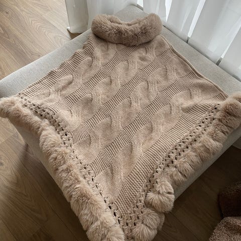 Poncho, Nyt, Up fashion, str. 125×145, Brun / beige/rød, 75 bomuld 20 akryl 5% polyester, Ubrugt, Har ligget i over 8 år nu skal det videre bytter ikke købes som beset