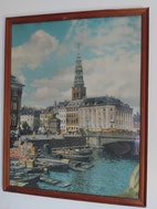 Stort vintage billede i glas og ramme med motiv af Gammel Strand i København. Billedet er indrammet i en træramme og viser en klassisk scene fra Gammel Strand i gamle dage. Perfekt til dekoration i hjemmet eller på kontoret.