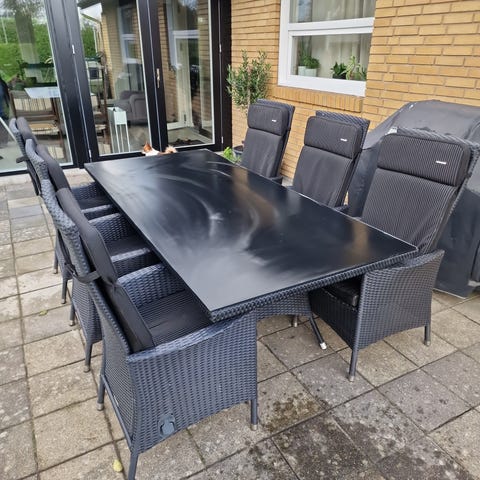 Lyra er en moderne og meget elegant serie i en dejlig blanding af materialer. Rammen er lavet af sort pulverlakeret rustfrit stål (304), perfekt til at modstå forskellige vejrforhold. Smukke detaljer af kunstig rattan på armlænene.