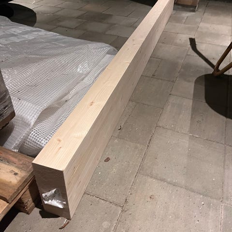 Limtræsstolpe/bjælke 90 x 100 x 1970 mm. Nogle få skrue/sømhuller. Billeder af alle 4 sider.