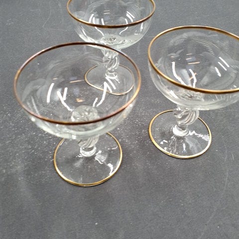 Champagneglas med måger fra Lyngby. Glassene og guldbemalingen er i hel og meget flot stand. Der er to styk ialt.