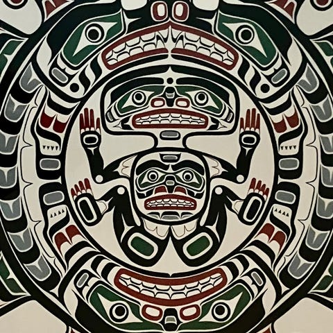 Litografi, motiv: Inkafigur, b: 73 h: 115, Inka motiv. Sandsynligvis aftryk af inkasøjle/-mur. Indkøbt i 1960'erne eller 1970'erne i sydamerika. Genindrammet i 2015.