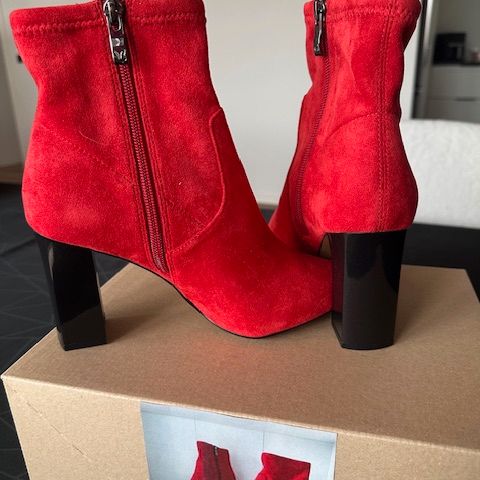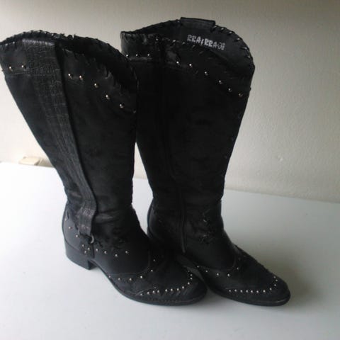 Sorte støvler med en gulv lynlås bagpå til pynt. Lavet af ruskind. Rigtig lynlås på indersiden. Brugt meget få gange