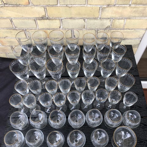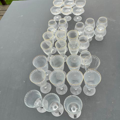 Kongeå - Rødvin 15,5 cm 4 stk, 40kr pr stk, Portvin 11 stk 10,5 cm 30kr pr stk, Likør 14 stk 7,2/7,5 cm 30kr pr stk, Cognac 8 stk 8,5 cm 40kr pr stk, Snaps 12 stk 7,5 cm 20kr pr stk