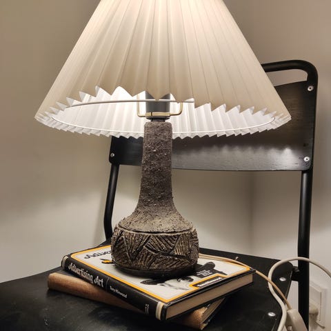 Uanset oprindelsen er lampen et flot eksempel på vintage studiokeramik, som passer perfekt ind i en retro eller moderne indretning.