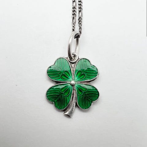 Det fineste vedhæng med firkløver i emalje, og sølv. Ca. ‘80-‘90 erne