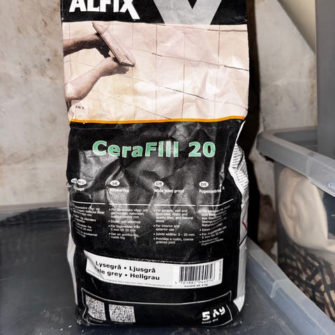 Hej har alle slags poser fliseklæb, beton, lim. Osv osv giv gerne et bip alle mærker skriv