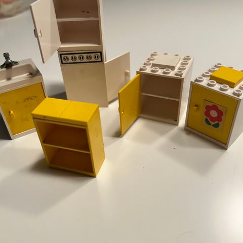 Et køkken i lego, med køkkenelementer og fliser m.v.