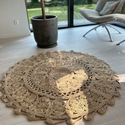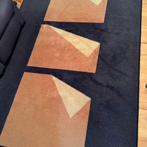 Tæppe, Ældre tæppe i blålige farve mål 78x137 cm fra dyre-og rygefrit hjem