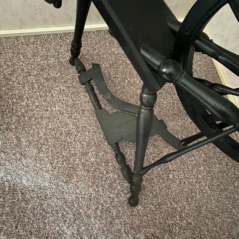 Samler du på gamle specielle møbler er her en spinderok som har været brugt flittigt til håndarbejde , forarbejdning af garn m.v.