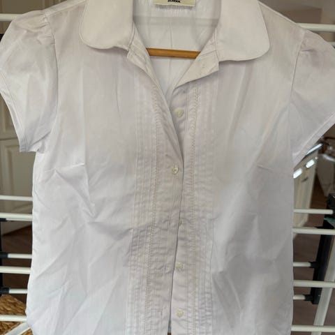 Helt NYE/UBRUGTE, hvide pigeskjorter fra New Turn (har begge stadig den der plasticdut i fra butiksmærket). Super Stretch Regular fit dameskjorte/pigeskjorte/skjortebluse. God stryg-let-kvalitet. Bomuld med stretch, så den både sidder flot pige-faconsyet, men også er behagelig at have på og bevæge sig i. Str. XS (hvilket jeg vil tro svarer ca. til en str. 152-164). Perfekt stand fra ikkerygerhjem uden husdyr. Kan sendes eller afhentes i Nørresundby. Prisen er pr. stk. ved køb af begge. Sælges også enkeltvis til 55,- pr. stk. Yderligere rabat gives gerne ved køb af flere af mine annoncer. butikspris 499,- pr. stk.