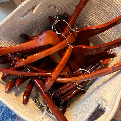 Træbøjle, massiv, flad, voksen, med klemmer, 12 mm tyk, B 45 cm. Konfektionsbøjle i sort.