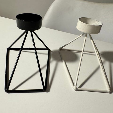 Sorte lysestager i metal. Dette sæt inkluderer to lyseholdere med plads til flere lys hver. Perfekt til at skabe en hyggelig atmosfære i hjemmet. Velegnet til brug på spisebordet eller som dekoration i stuen.