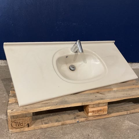 Kuma vask til badeværelse. Har produktionsfejl ved afløbshullerne. Og revne herfra. Ellers intakt og i pæn stand.