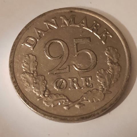 25 øre 1967 med fejl i højre blad på Egegrenen (ekstra Blad)