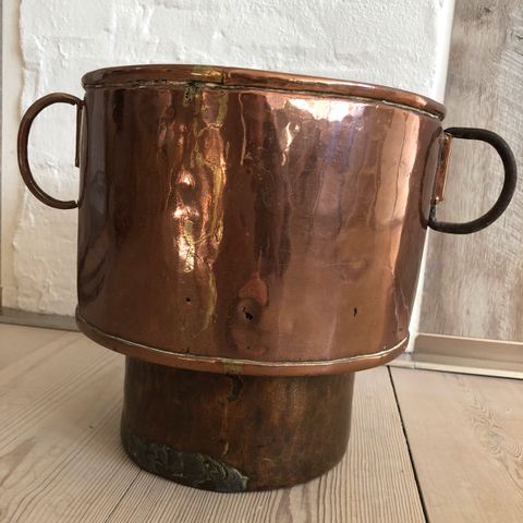 Smuk gammel kobberspand med masser af patina. Fin stand.