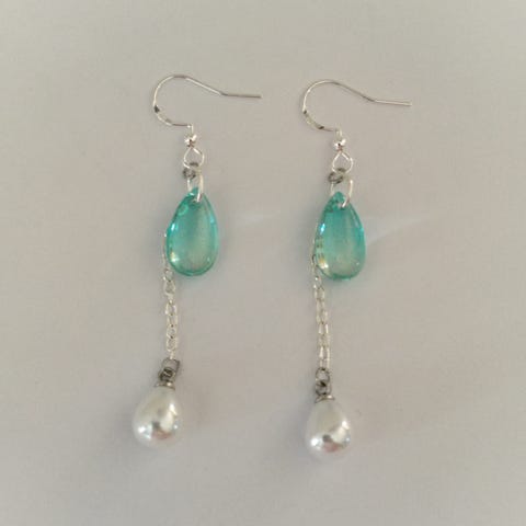 Nye Elegante Sølv øreringe med en kombination af lyseblå og hvide perler
