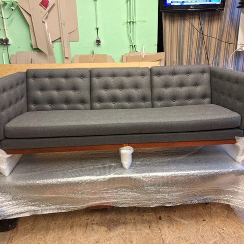 Erik Jørgensen 2 Personers Sofa, her ny betrukket i Boucle Stof i farven OfWhite
