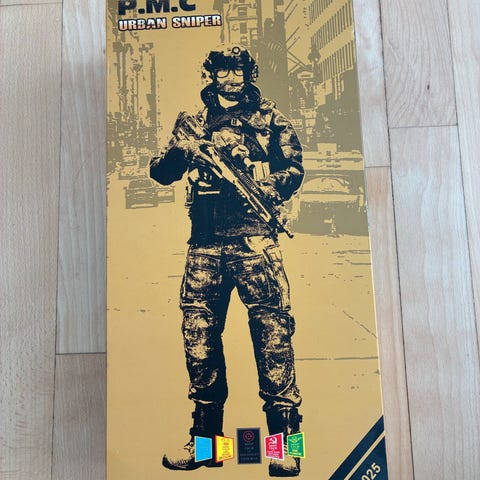 Figuren er samlet, men har ingen skader. Dog er hans våben malet sort i stedet for tan. Æsken har fået nogen slag.