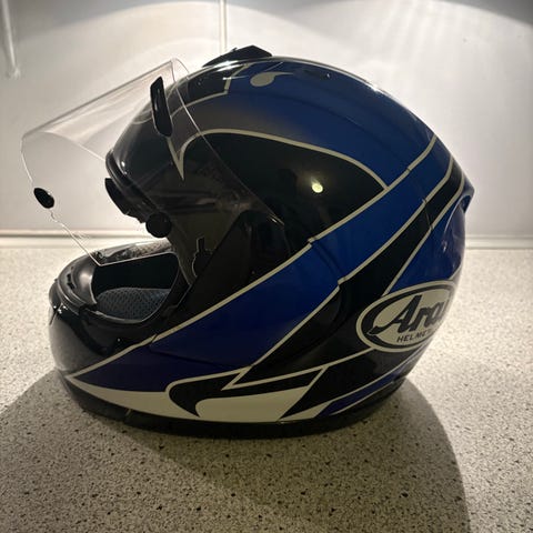 Arai RX-7 EVO . Str. XL (60-61cm men lille i str. ) En helt ny hjelm . Top modelen fra Arai. Nicky Hayden replica (2025 model med 22-06 som er højeste EU sikkerheds standard ) Fejl køb. Købt i 2025. Helt ny… passede ikke til ny indkøbt mc i farver, og da de 14 dages retur ret var gået, sælger jeg den her…kan nem sendes. Har de originale papire, hjelm hue og tilkøbt org sort visir +500kr. og nej bliver ikke solgt for det samme som en T Hansen hjelm . Så bliver den bare liggende til den rigtige køber eller næste mc køb. Nypris 7-8000kr.