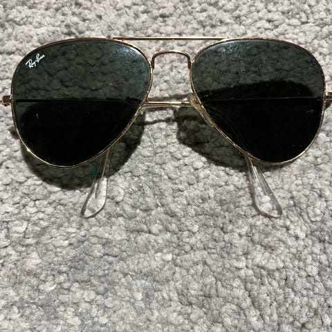 Retro Ray-Ban Aviator solbriller i guld med grønne linser. Klassisk design med metalramme. Leveres med etui.