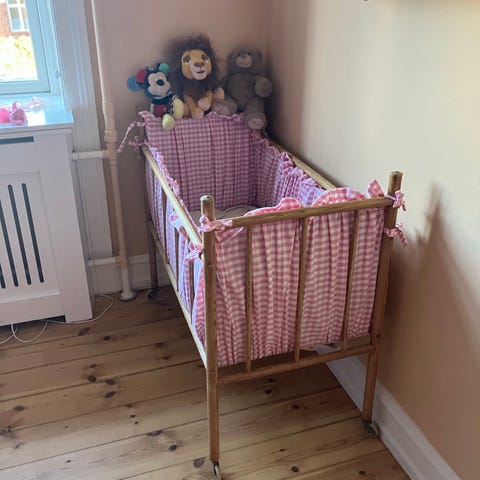 Nyfødtseng. Træ med madras og betræk. Kan leveres til dig tættere på CPH