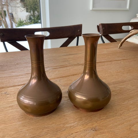 Vase, Cawa, Lille blomstervase i kobber med patina.