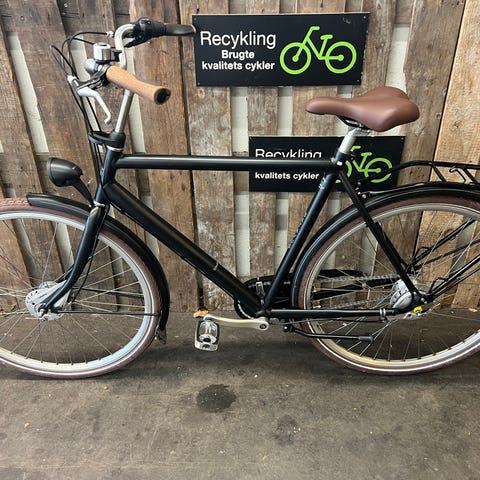 Super flot, velkørende og velholdt cykel, som er som ny, med 7 indvendige Shimano gear, 53 cm. alu. stel, rullebremse, lygter, alu. kurv, lukket kædekasse, kædestrammer, bagagebærer og 6 mdr. garanti. Cyklen er nyserviceret og har fået nye læderhåndtag, ny klokke, nyt bremsekabel, nyt gearkabel, ny sadel, nye pedaler, ny støttefod, 2 nye dæk, 2 nye slanger, ny kæde og nyt gearhjul.