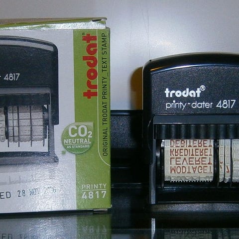 Datostempel med sort farvepude