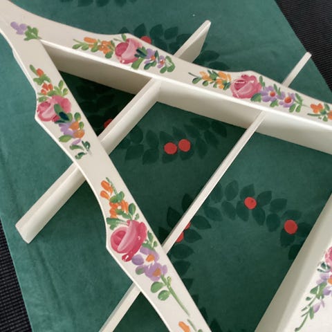 Rigtig fin & charmerende hvid Amagerhylde, Amager hylde m/blomster stafferinger